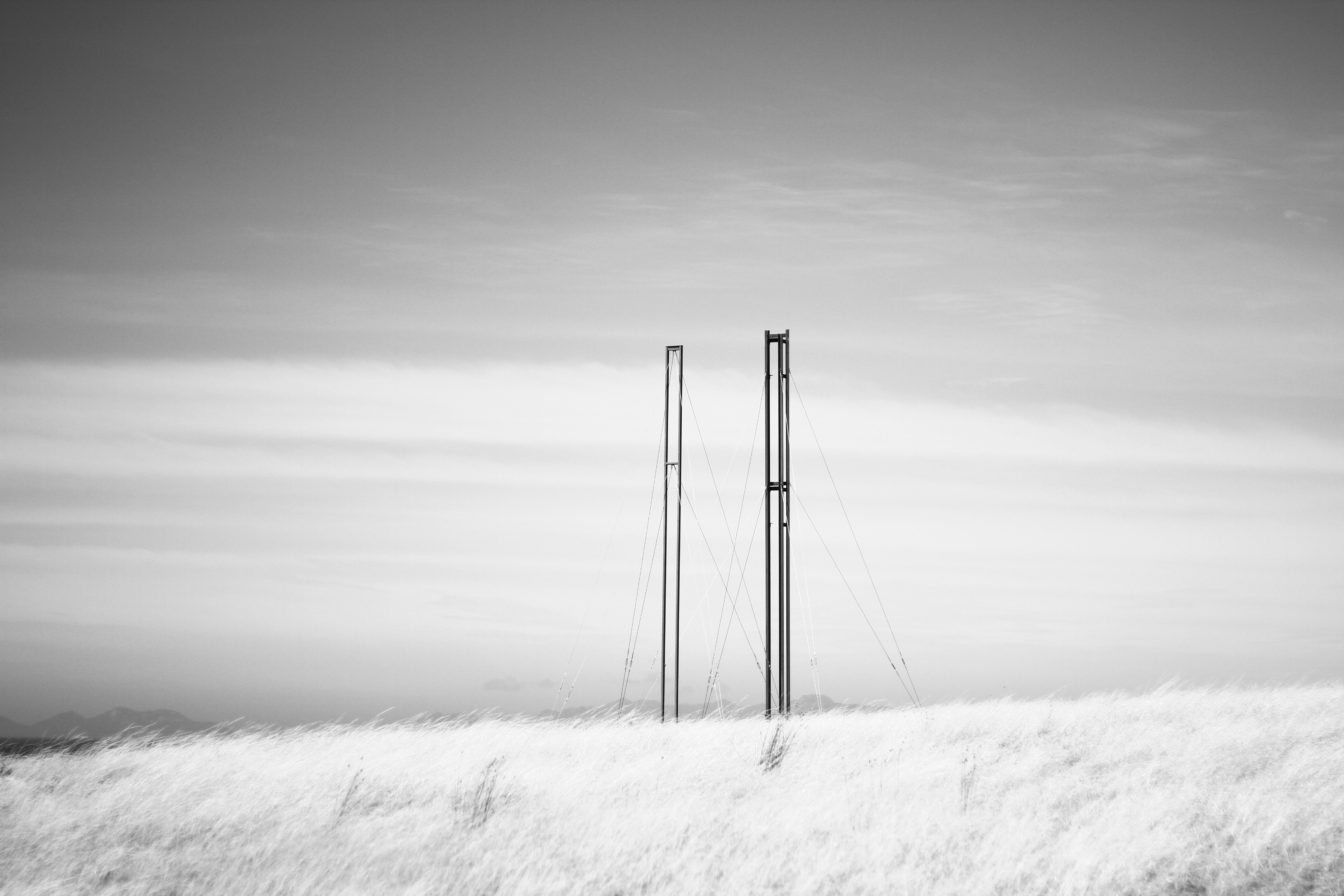 The Distance: a temple to nothing, a gate to nowhere. Two structures – 7 and 8 metres tall – stand at the edge of Kelvedon Estate, on the east coast of Tasmania. Part of the ‘Sights of Love and Neglect’ project for Ten Days on the Island, 2017.